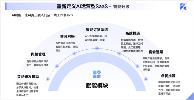 “運(yùn)營型SaaS”而非“工具型SaaS”:不僅提供軟件,更將行業(yè)Know-How(如連鎖管理經(jīng)驗(yàn)、供應(yīng)鏈最佳實(shí)踐)沉淀為產(chǎn)品功能,讓餐飲系統(tǒng)成為品牌的“運(yùn)營方法論載體”,幫助企業(yè)管理團(tuán)隊(duì)“穿越生命周期”。