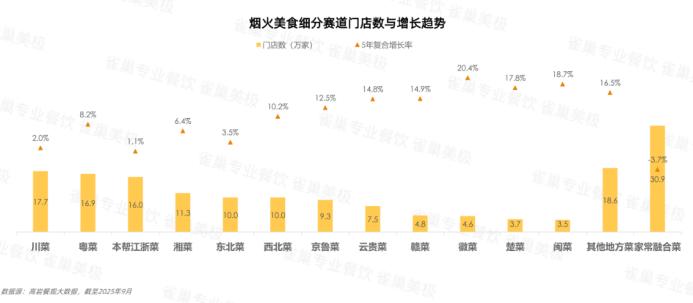 無論是一桌朋友輕松聚餐,還是游客體驗(yàn)在地文化,“煙火氣”成了最誘人的招牌。云貴菜、西北菜等地方菜系的快速增長(zhǎng),正是這股“向下扎根,向上生長(zhǎng)”趨勢(shì)的體現(xiàn)。