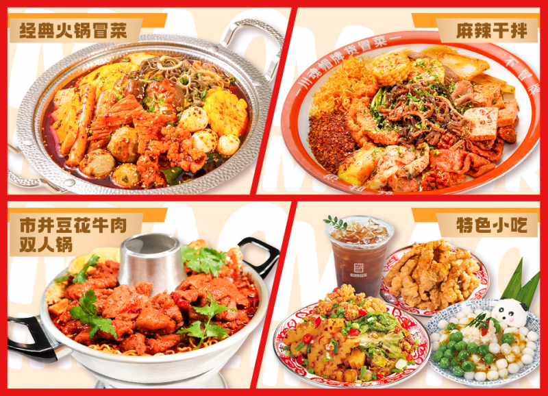 產(chǎn)品端:回歸本味,品質(zhì)為核。不同于行業(yè) “過度創(chuàng)新” 導(dǎo)致的口味失真,帽牌貨冒菜的產(chǎn)品升級(jí)始終圍繞消費(fèi)者味蕾展開,保留經(jīng)典火鍋冒菜、麻辣干拌等核心味型,推出適配大眾口味的老成都冒菜,兼顧川味正宗與川外消費(fèi)者受眾接受度。冒菜+小吃的組合,豐富消費(fèi)場(chǎng)景、增強(qiáng)品牌競(jìng)爭(zhēng)力,同時(shí),小吃的低操作難度、高毛利特性,能進(jìn)一步降低加盟商的運(yùn)營(yíng)成本和風(fēng)險(xiǎn),助力門店穩(wěn)定盈利。為了緩解淡旺季差異,研發(fā)推出小火鍋、麻辣香鍋等四季適配產(chǎn)品,有效平衡門店淡旺季營(yíng)收。更多新品不斷研發(fā)中,2026年會(huì)持續(xù)上新。