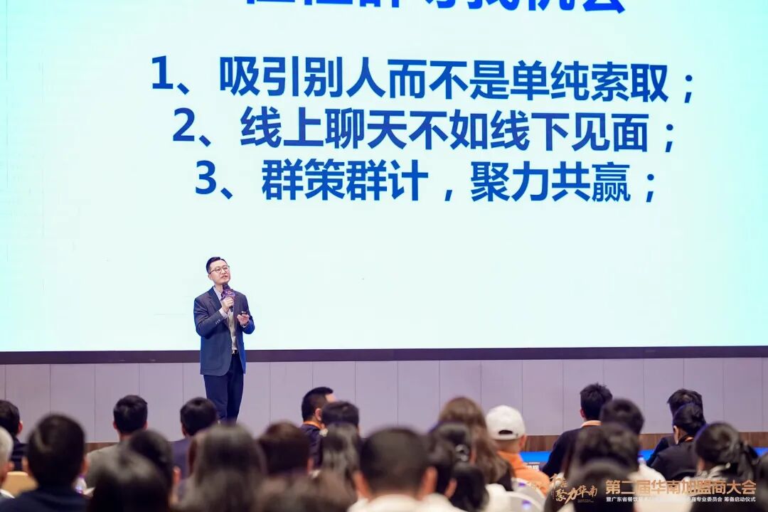 華南加盟商社群發(fā)起人周輝先生則帶來《以社群為橋 聚華南力量》的分享,強(qiáng)調(diào)社群是加盟商鏈接資源、抱團(tuán)取暖的核心平臺,將持續(xù)為創(chuàng)業(yè)者搭建高效對接渠道。