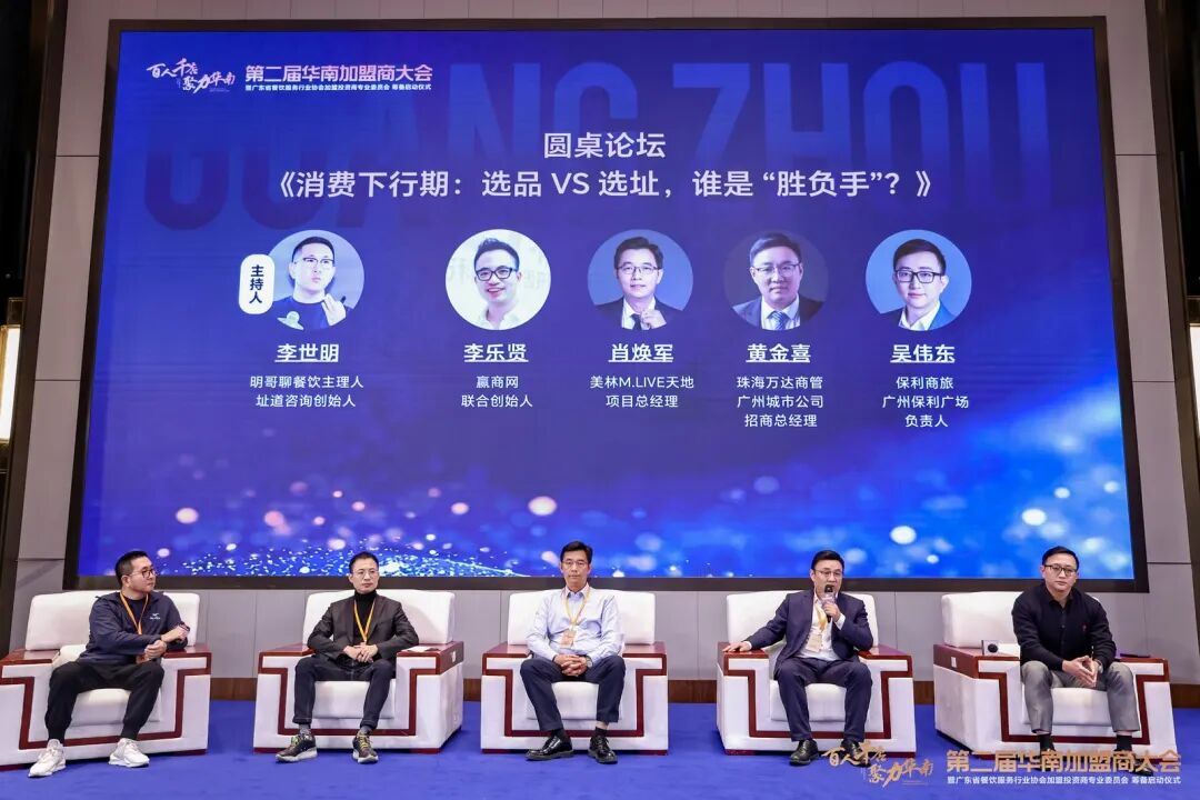 隨后的《消費(fèi)下行期:選品VS選址,誰是"勝負(fù)手"?》圓桌論壇,聚焦加盟商最關(guān)心的決策難題,商業(yè)地產(chǎn)大咖與選址專家對話。