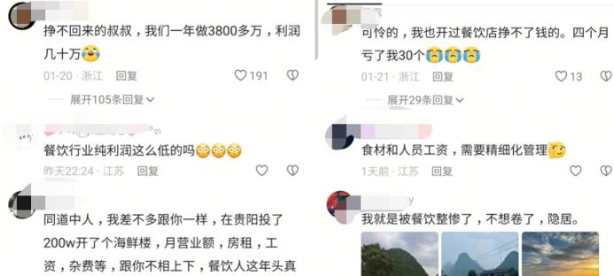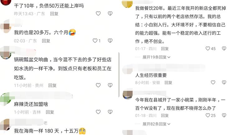 “這一年,我們賺了個‘辛苦’”!忙活一年,沒拿到“辛苦錢”的餐飲人這樣自嘲。但比自嘲更扎心的是廣泛的“共鳴”。那些評論區(qū)里的留言,像一面鏡子,照出餐飲業(yè)的現(xiàn)狀。