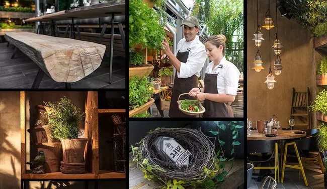 想建構(gòu)這樣的鮮摘餐廳,一開始室內(nèi)設(shè)計(jì)裝潢時(shí),就要特別為植物預(yù)留空間,以植物也是重要裝飾品的概念去發(fā)展。并且多用心在透光度及照明光線等,讓植物的生長(zhǎng)需求也考慮進(jìn)去。要注意的是,搭配綠色植物的最佳裝潢,是木制家具。