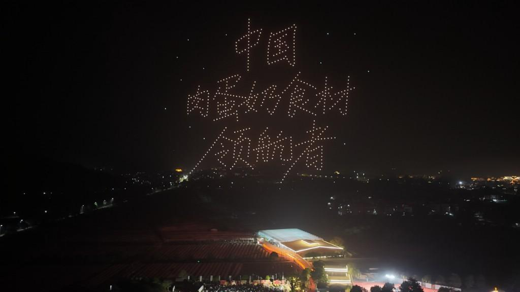 當(dāng)晚八點(diǎn),無(wú)人機(jī)群騰空而起,以天為幕,演繹了一場(chǎng)震撼的光影盛宴。夜空中依次浮現(xiàn)“千人火鍋 共創(chuàng)紀(jì)錄”、“中華土雞 餐桌C位”、“溫氏食材 中國(guó)肉蛋奶食材領(lǐng)航者”、“鄰家農(nóng)場(chǎng) 我家廚房”、“溫泉康養(yǎng) 尋味新興”、“農(nóng)文旅融合發(fā)展”等絢麗畫(huà)面,巧妙串聯(lián)起當(dāng)日盛事、本地文化特色與產(chǎn)業(yè)發(fā)展愿景,并將溫氏的品牌定位與理念進(jìn)行動(dòng)態(tài)呈現(xiàn)。這場(chǎng)科技與藝術(shù)交融的表演,與農(nóng)場(chǎng)的自然生態(tài)相映成趣,構(gòu)建出“產(chǎn)業(yè)+文旅+科技”的多元體驗(yàn)場(chǎng)景,將活動(dòng)熱度推向高潮。
