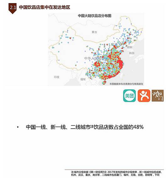 整個中國飲品市場,飲品店主要集中在中部城市、東部沿海城市。