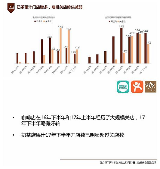 1)2017年全年,飲品店開店18萬家,閉店18萬家;